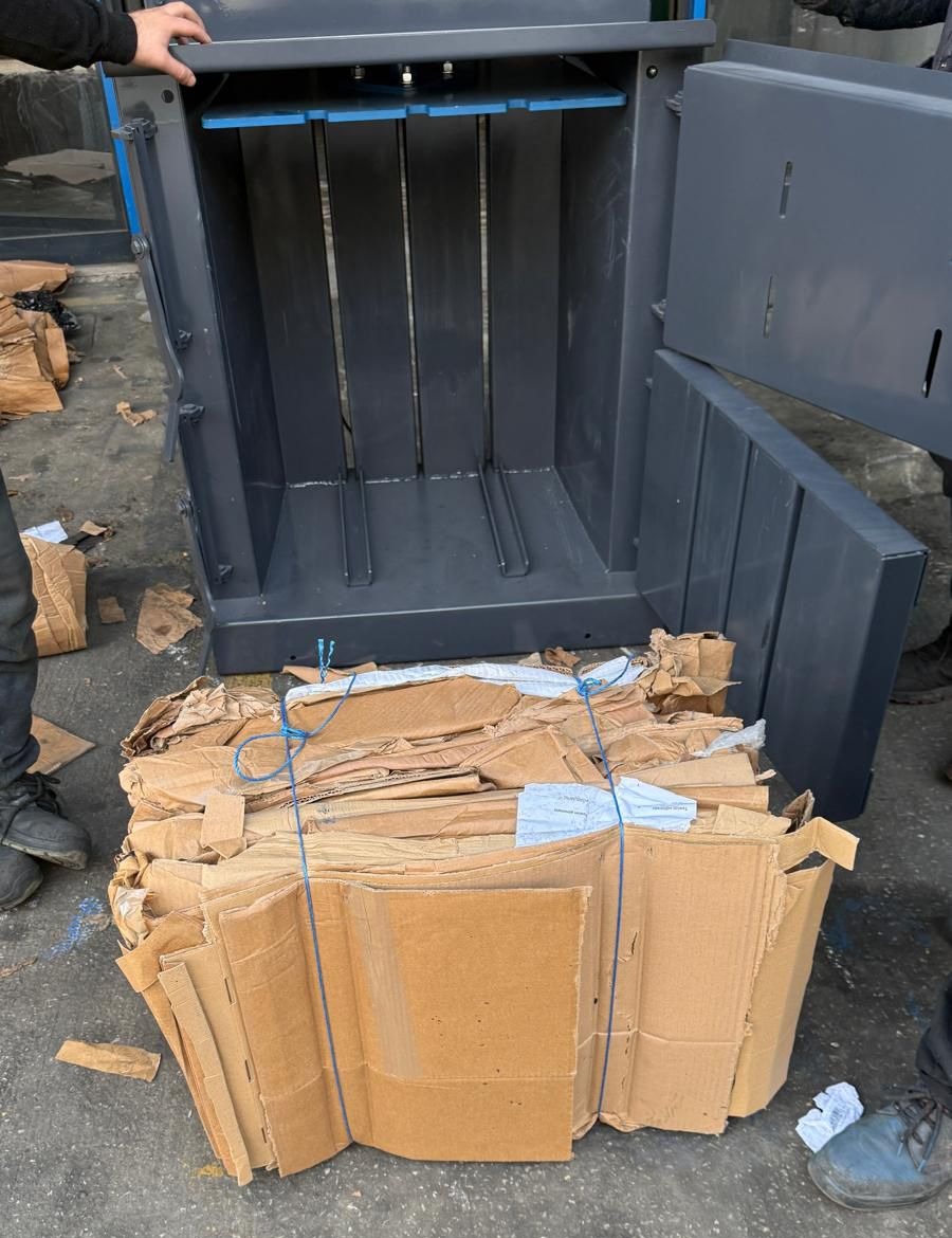 It is primarily designed for baling cardboard and paper materials.