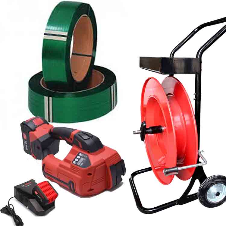 Plastic strapping kit ARGON 10-16mm PET/PP incl. Battery & Charger + PET strap 12mm – strapping cart